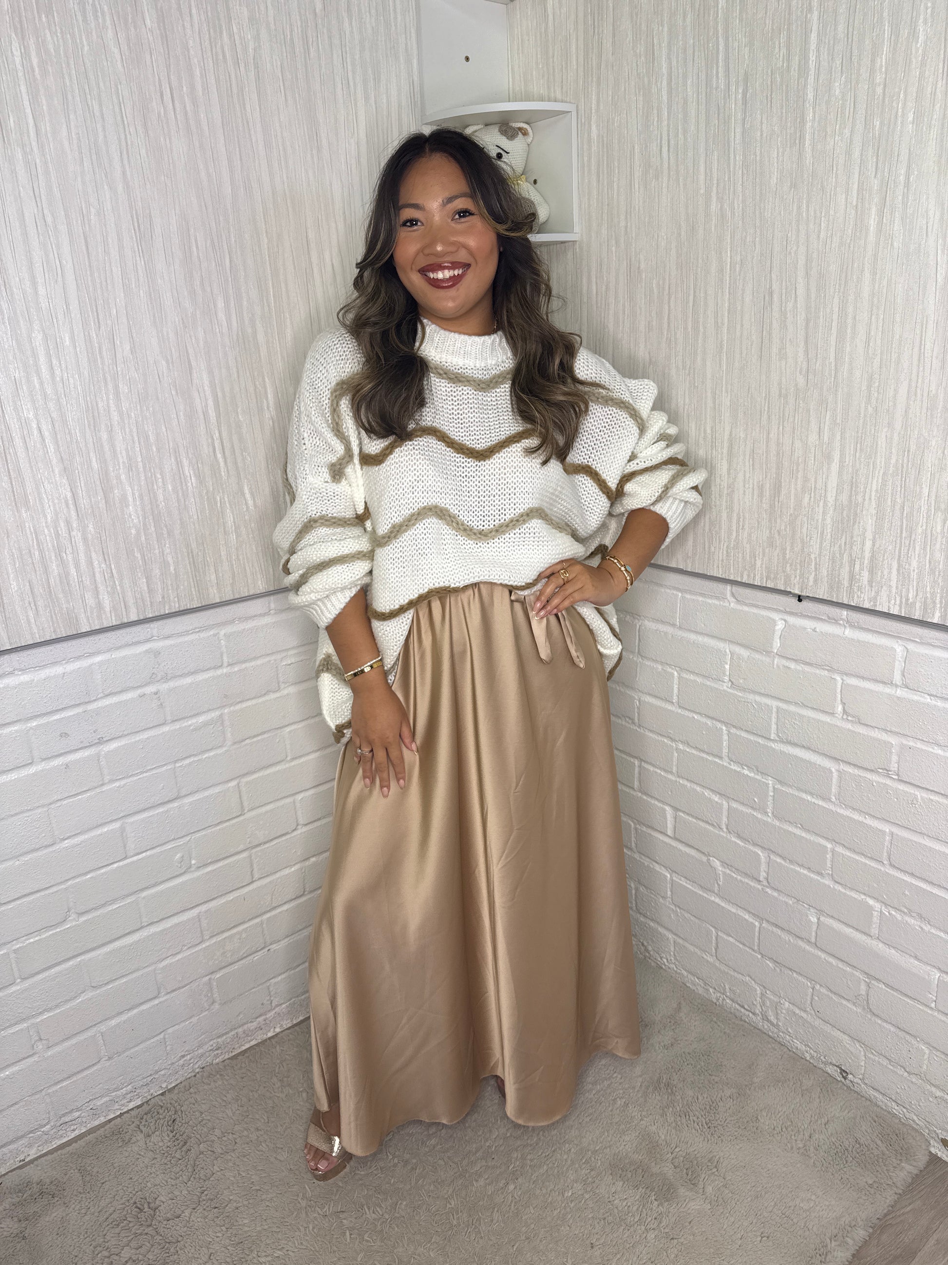 Upgrade your wardrobe with Amy, the must-have knit jumper. Featuring stunning stripe detailing and a flattering fit, this jumper will keep you stylish and comfortable all day long. With its high-quality knit, you'll be sure to turn heads and make a statement. Don't miss out!
