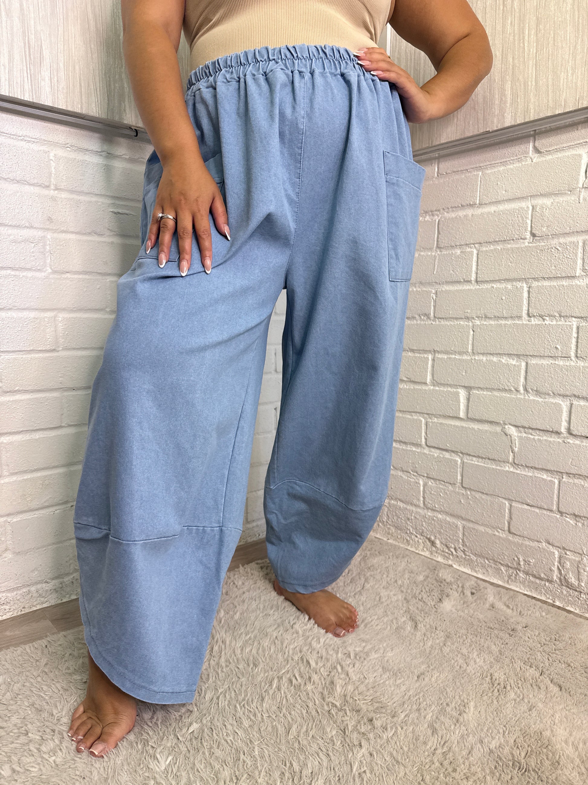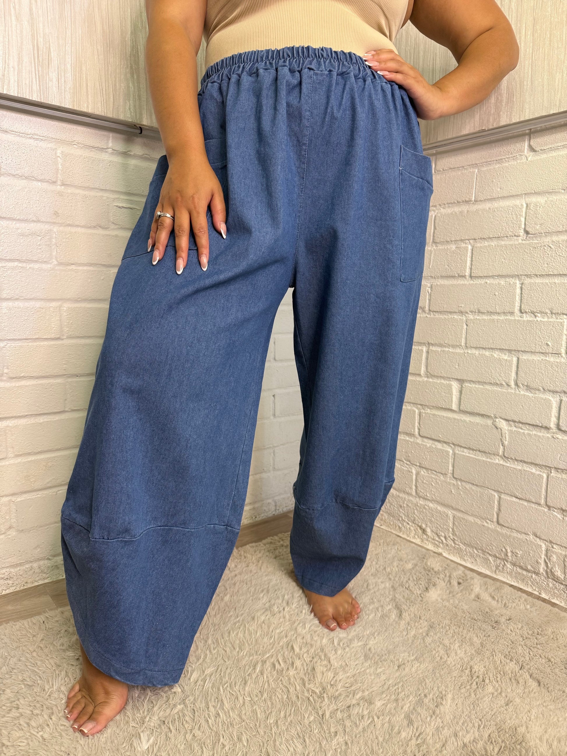 Diane's stylish soft denim trouser pant feature pockets for added convenience and functionality. Perfect for any occasion, these trousers provide both style and practicality. The soft denim material offers comfort and the pockets allow for easy storage of small items. Stay stylish and organised with Diane.