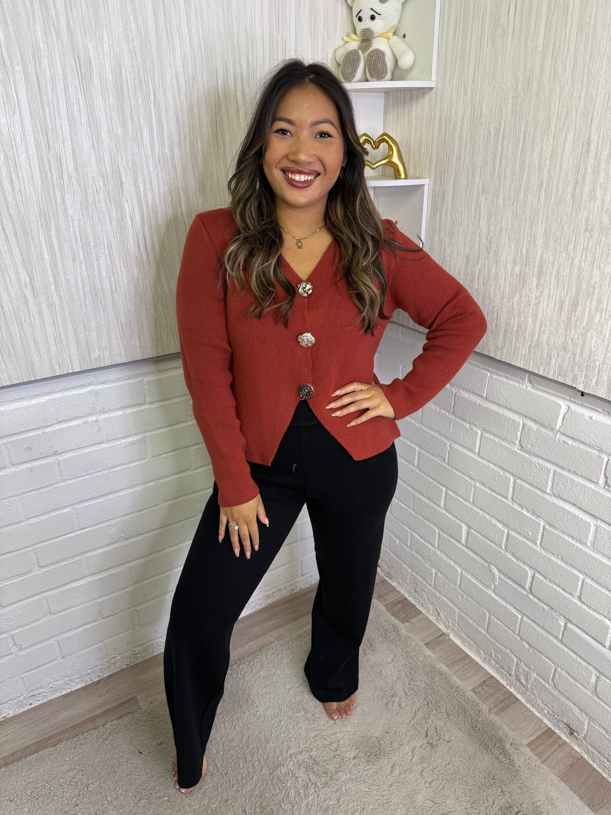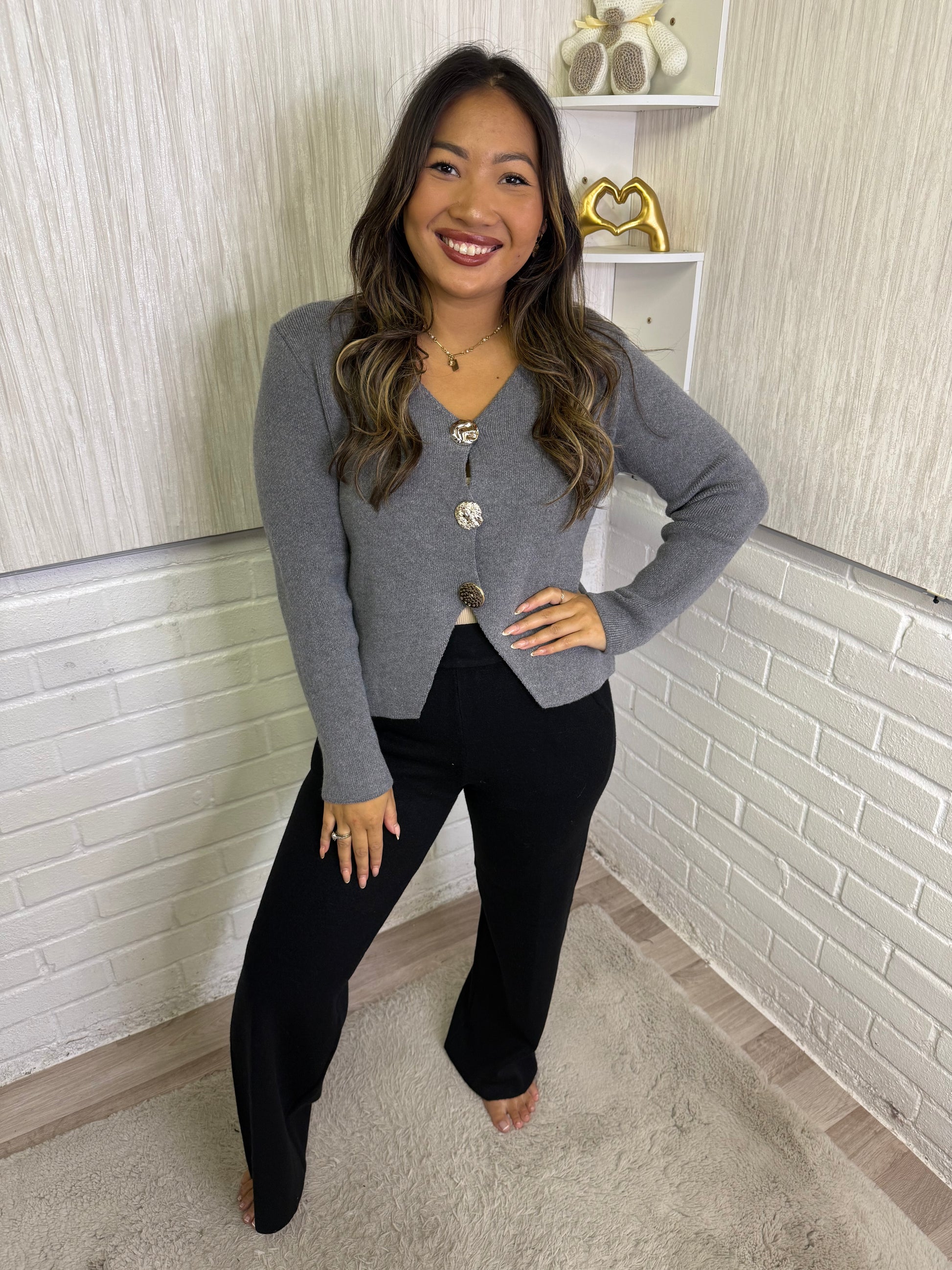 A gorgeous fine knit jumper with gold accent buttons - goes up to a size 14 Material - 50% viscose 22% nylon 28% polyester