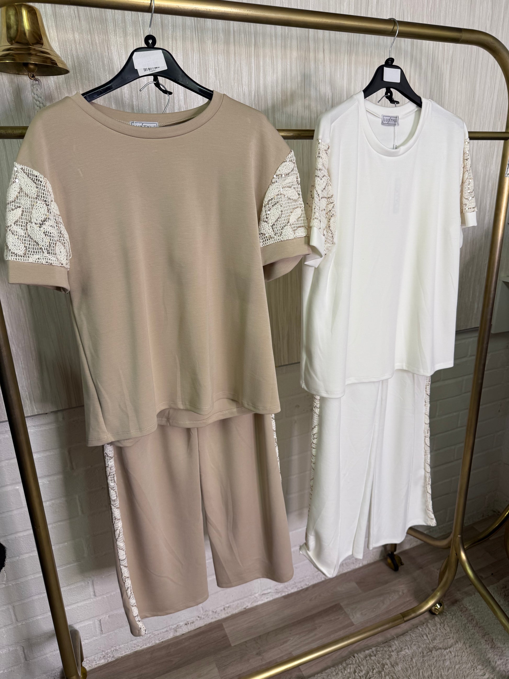 Experience effortless elegance with this stunning co-ord set crafted from luxuriously soft-touch material. Designed to feel as good as it looks, it features delicate crochet and shimmering sequin detailing for a unique blend of comfort and style. Perfect for making a memorable statement at any occasion, this set combines eye-catching texture with a flattering fit to elevate your wardrobe instantly. Embrace standout sophistication without sacrificing comfort.
