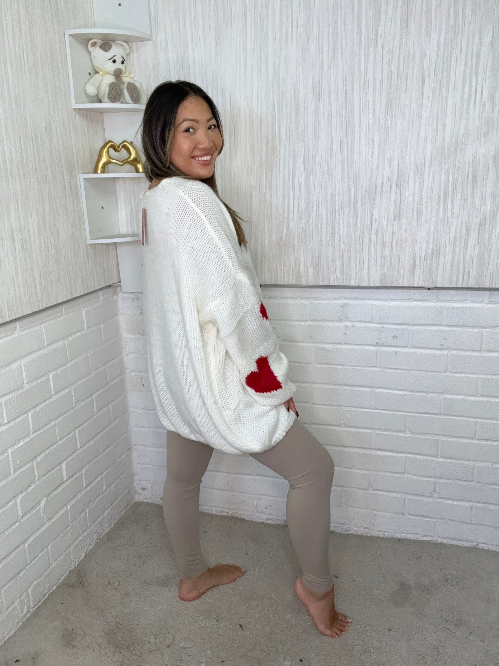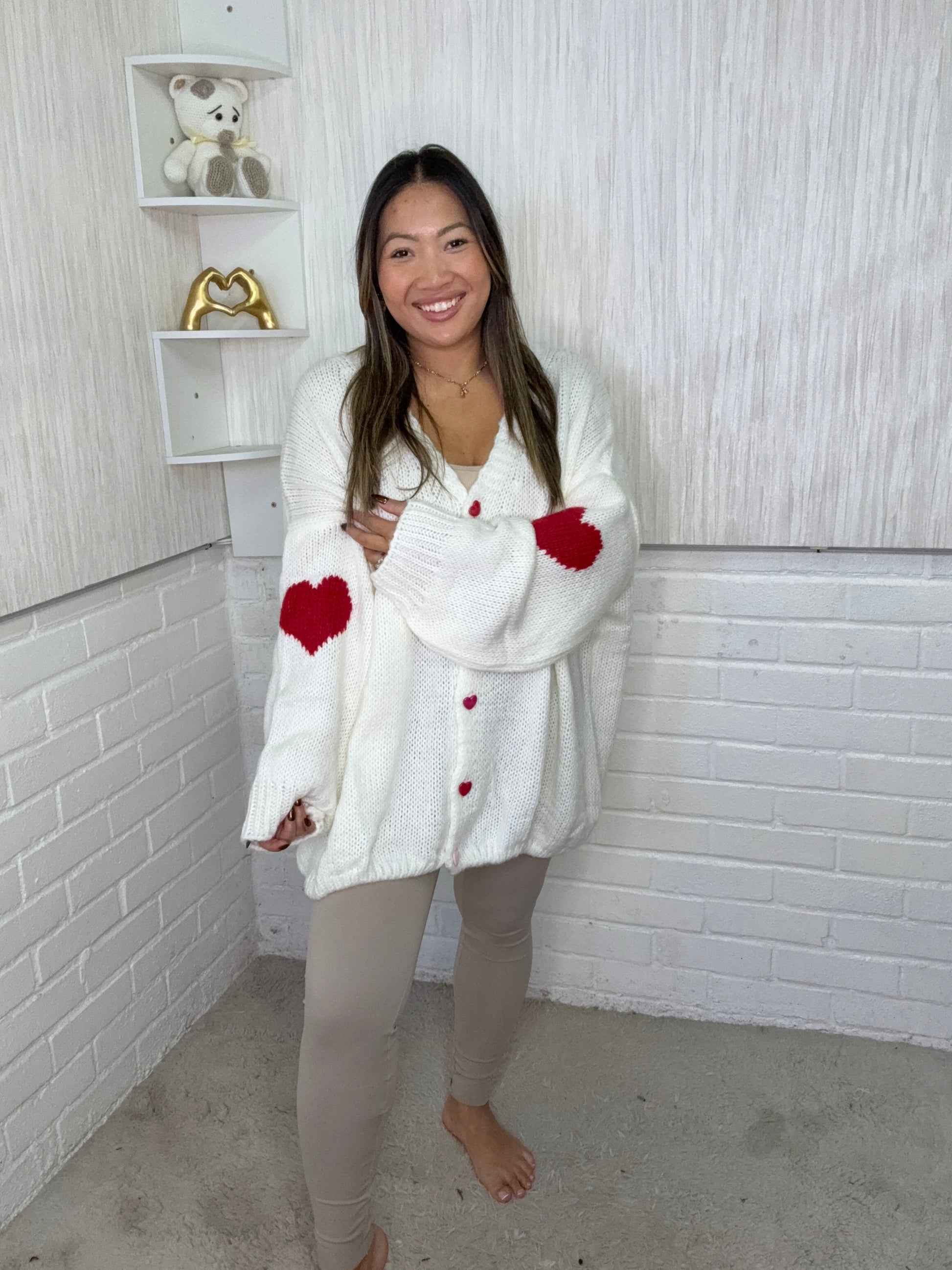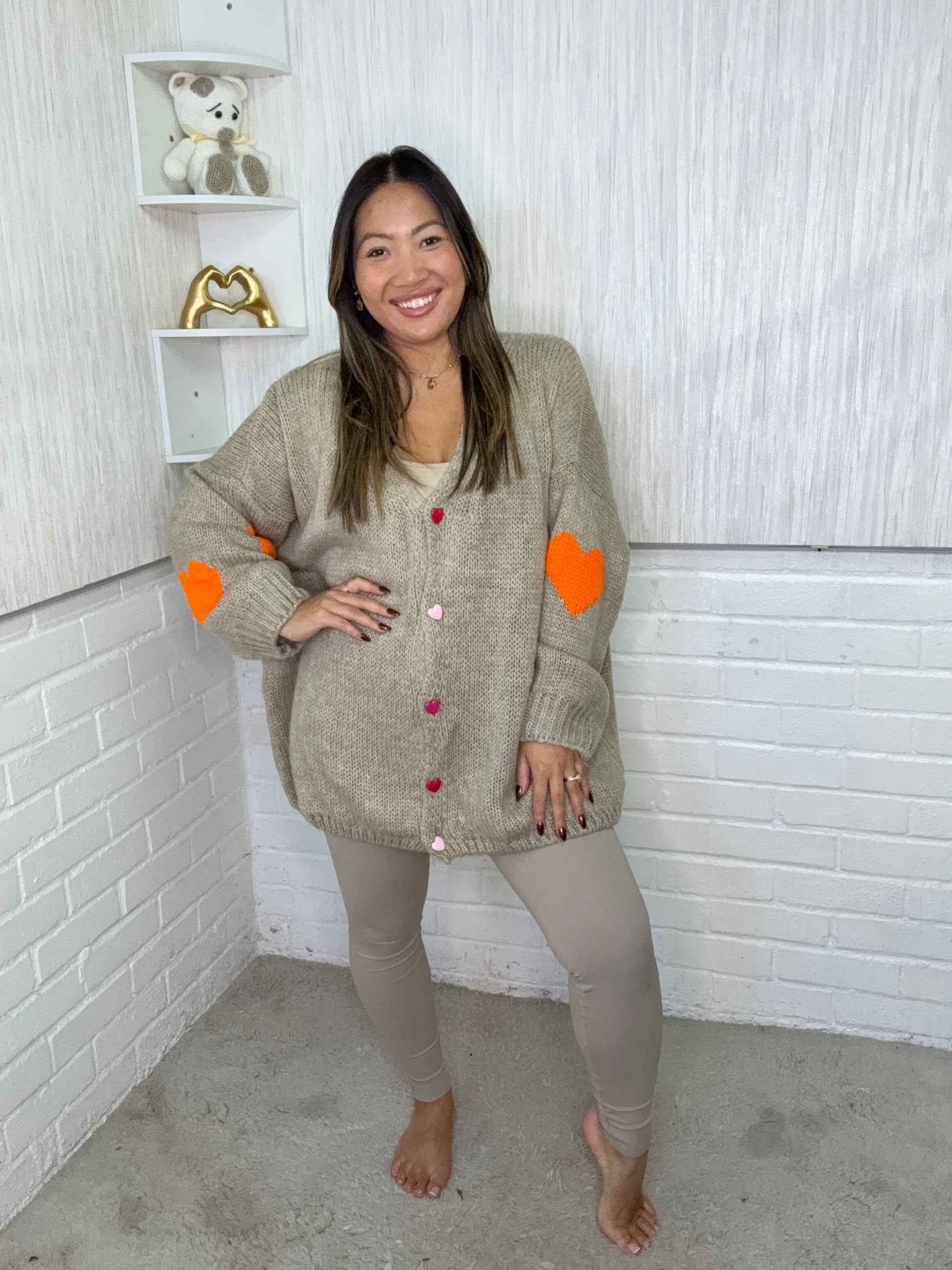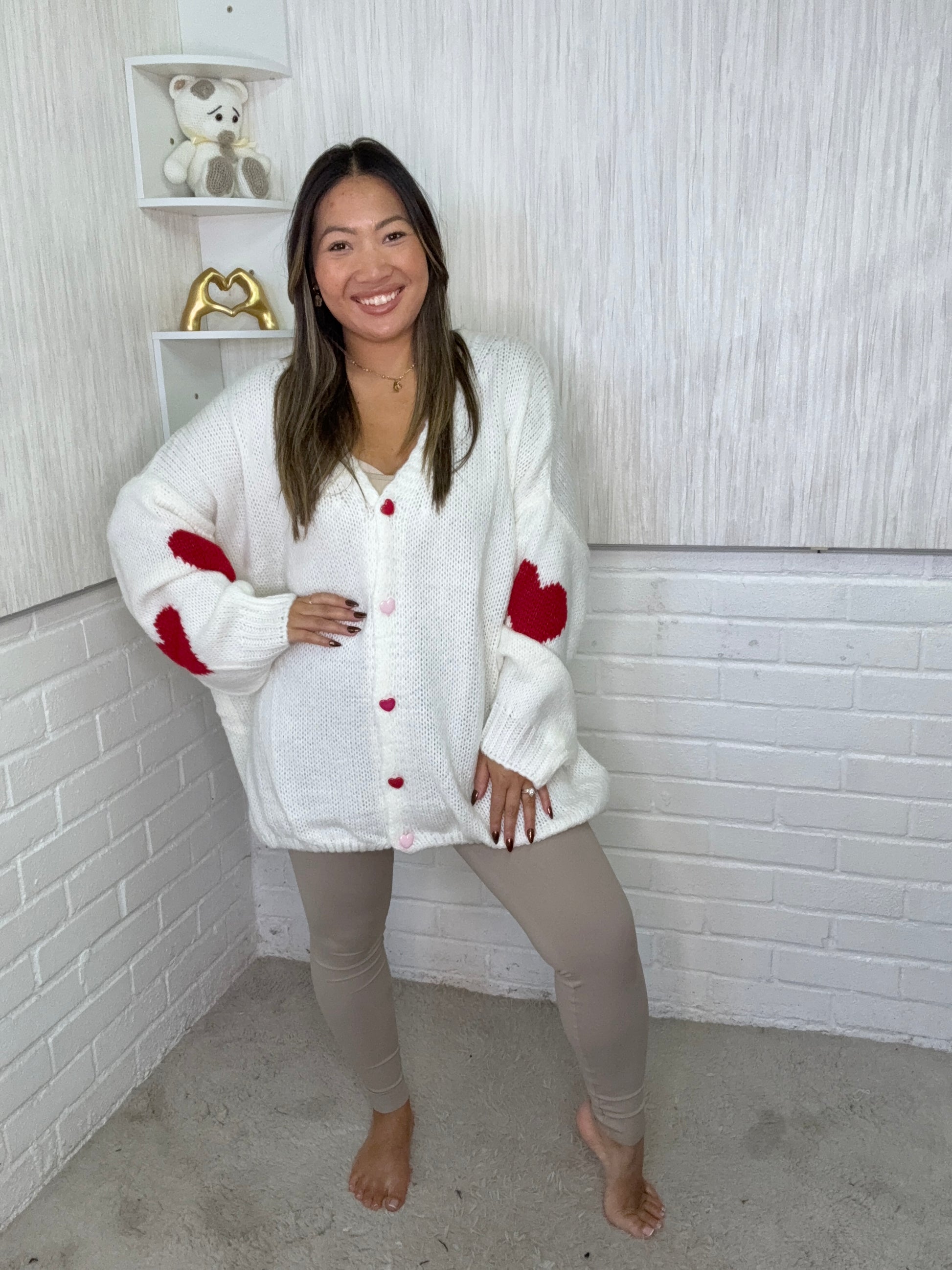 Introducing Louisa, the perfect cardigan for any occasion. Made with a lovely knit fabric, this cardigan features heart buttons that not only add a touch of charm but are also functional. With heart detailing on the sleeve, this cardigan is sure to become your new go-to for a stylish and versatile look.