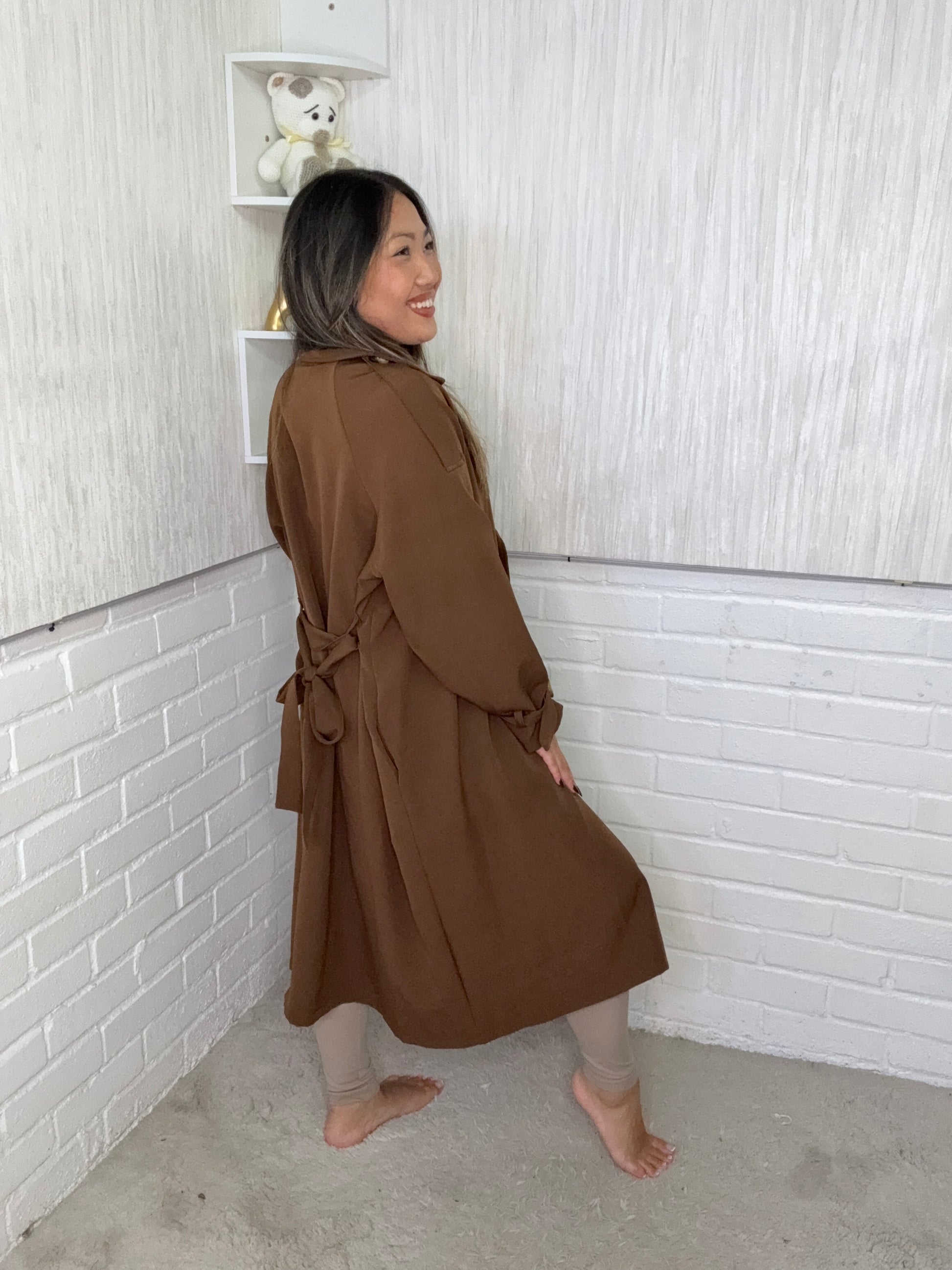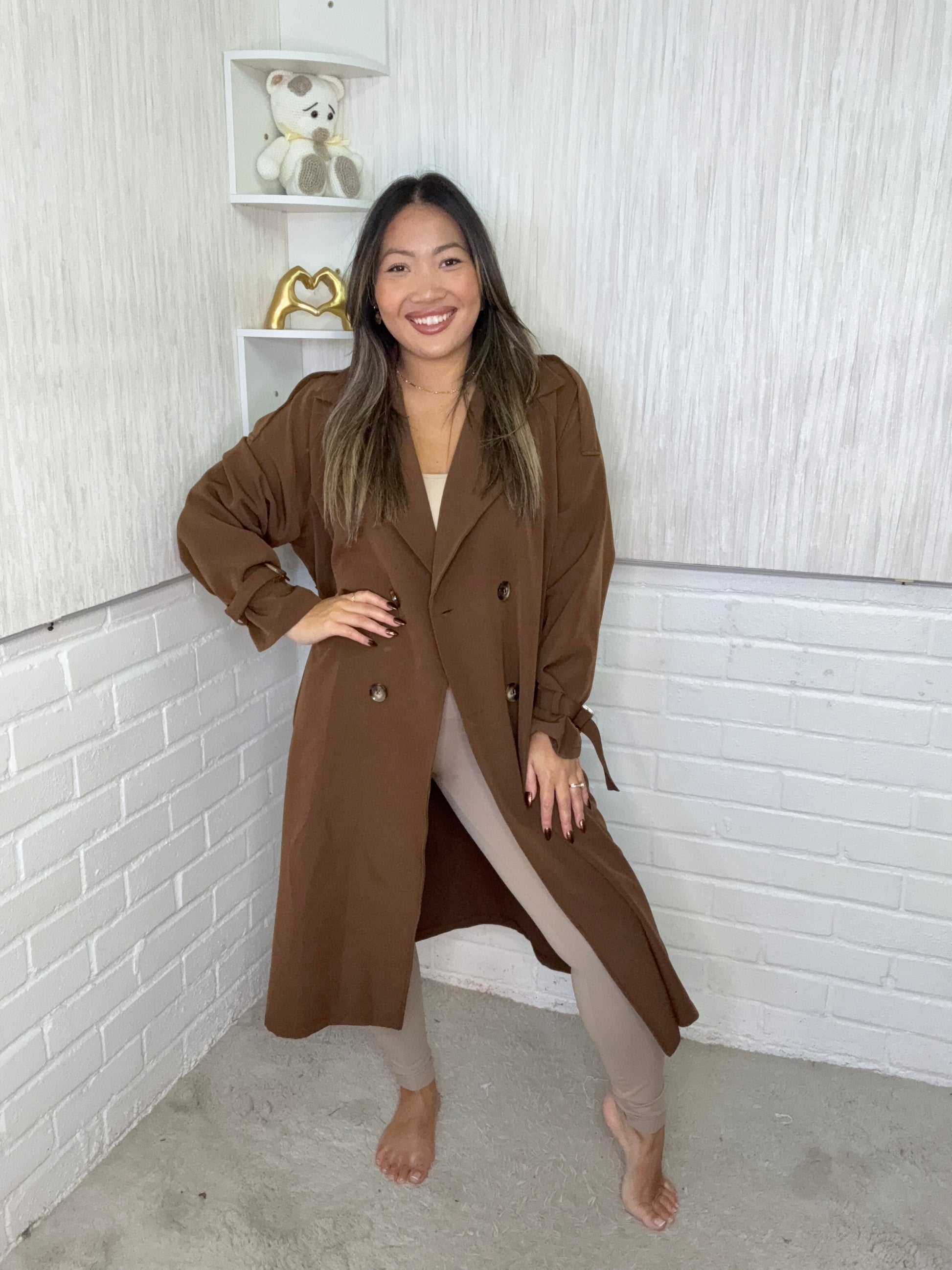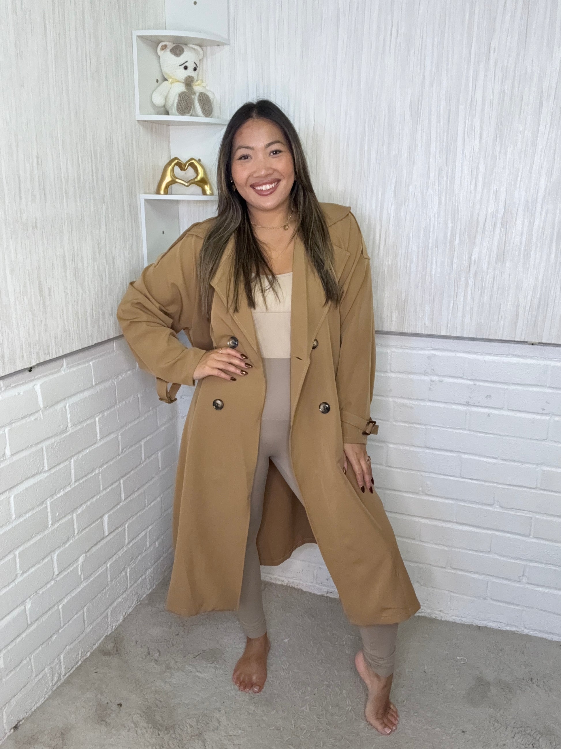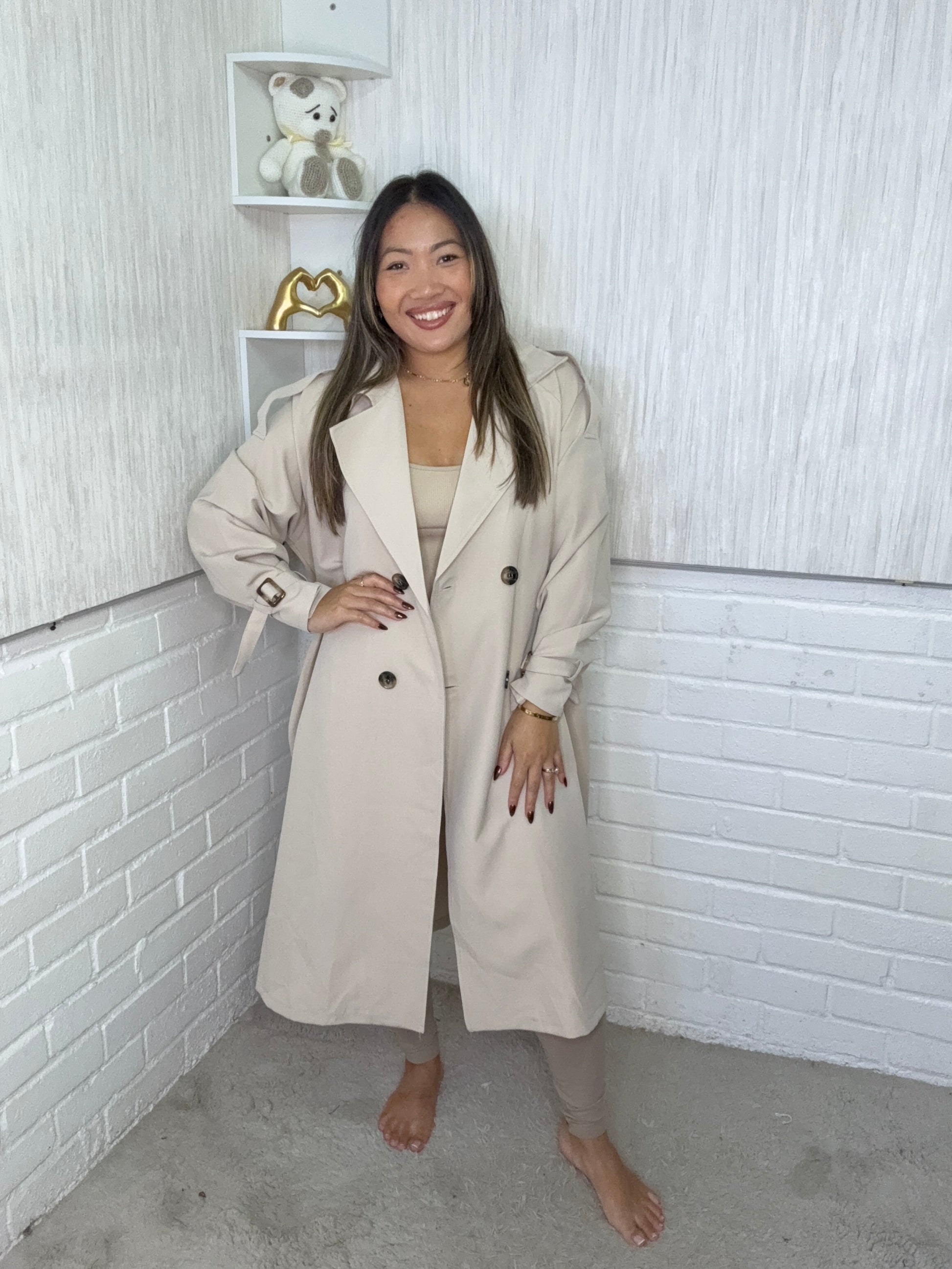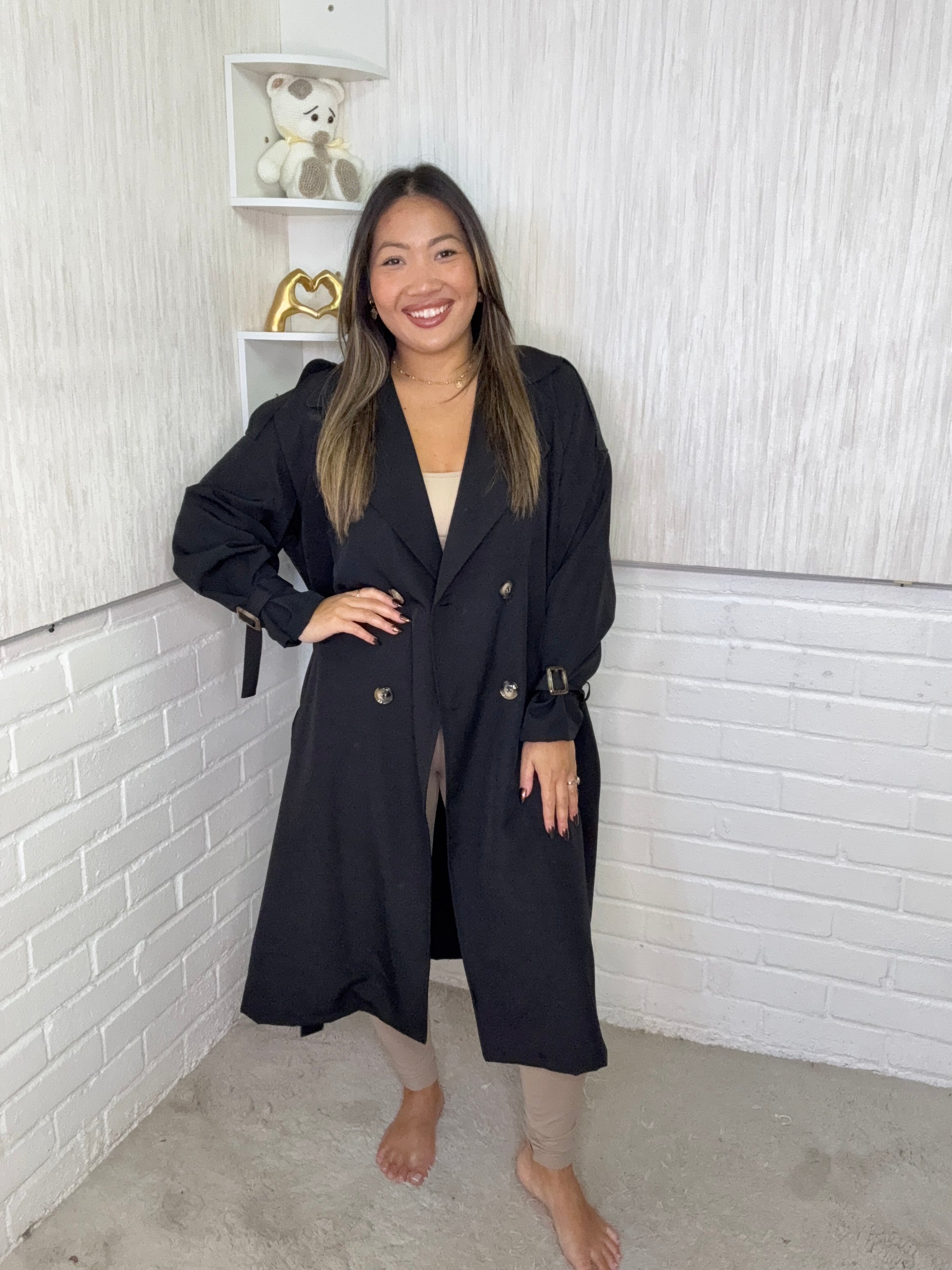 The Lucy trench coat is perfect for all sizes, fitting up to a size 22. Made with 95% polyester and 5% elastin, this coat offers both style and comfort. Designed to complement any figure, this one-size coat is a must-have for your wardrobe. Professional, timeless, and versatile. Model is a size 12 and 5ft 2”