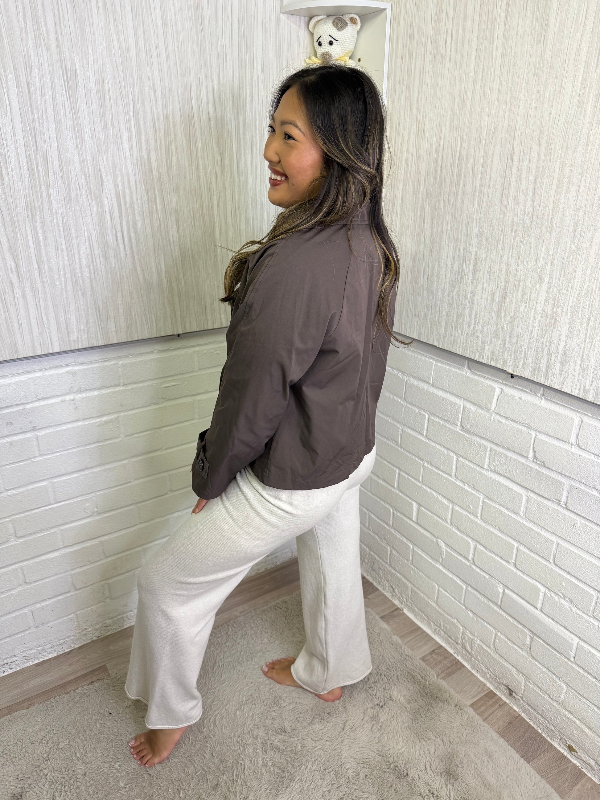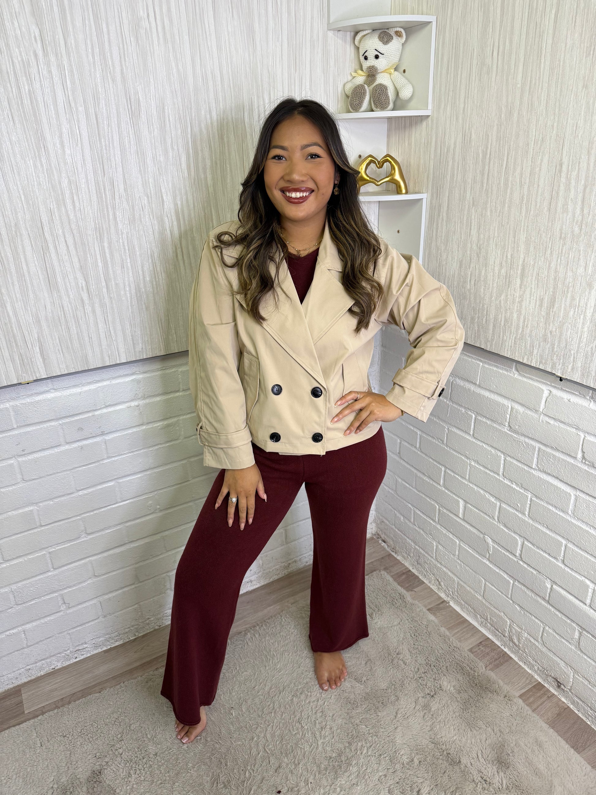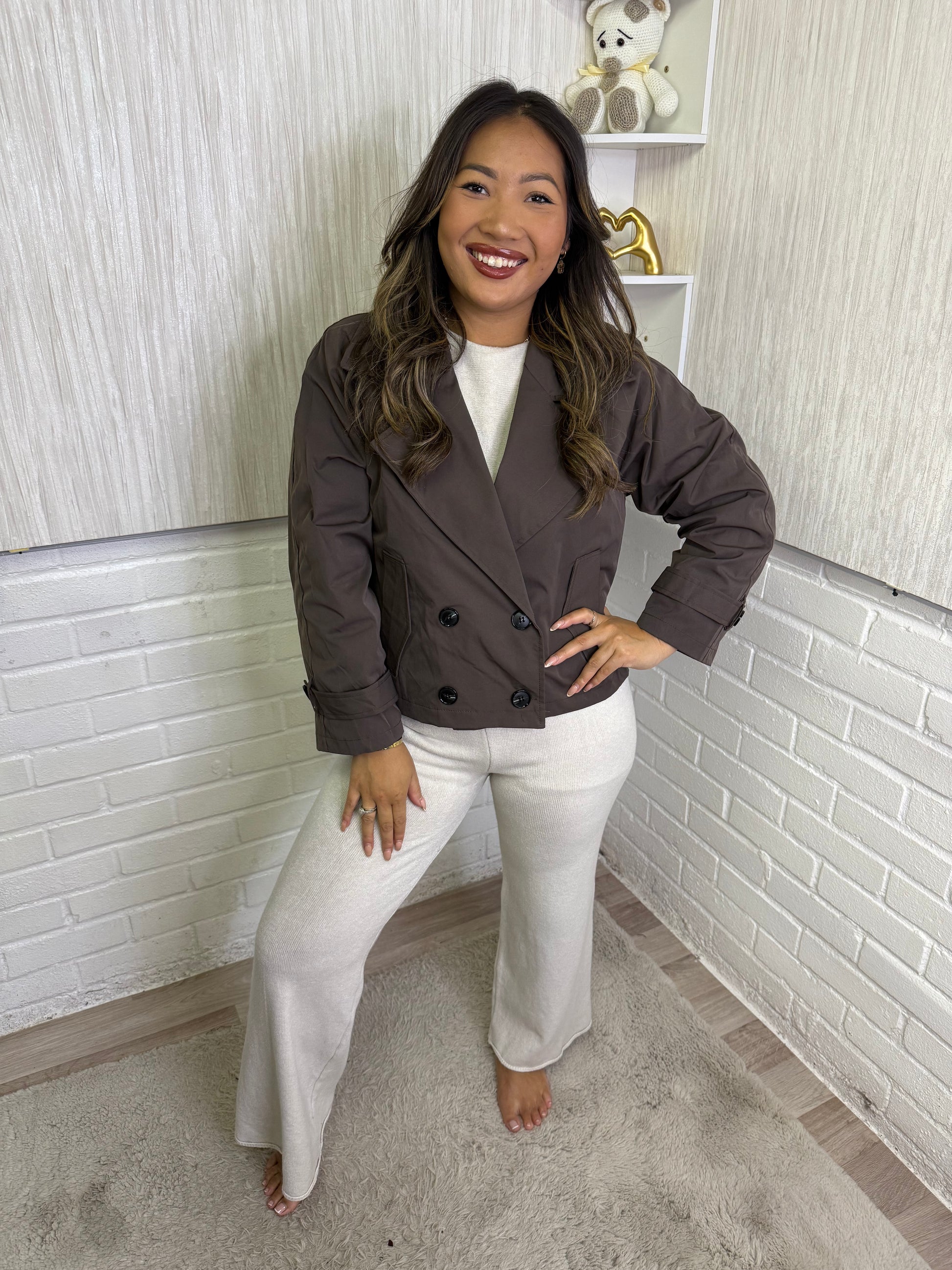 Melanie is the perfect addition to your wardrobe. Its stunning cropped trench coat design will elevate any outfit. Made with high-quality materials, this jacket is not only stylish but also durable. Stay warm and fashionable with Melanie.