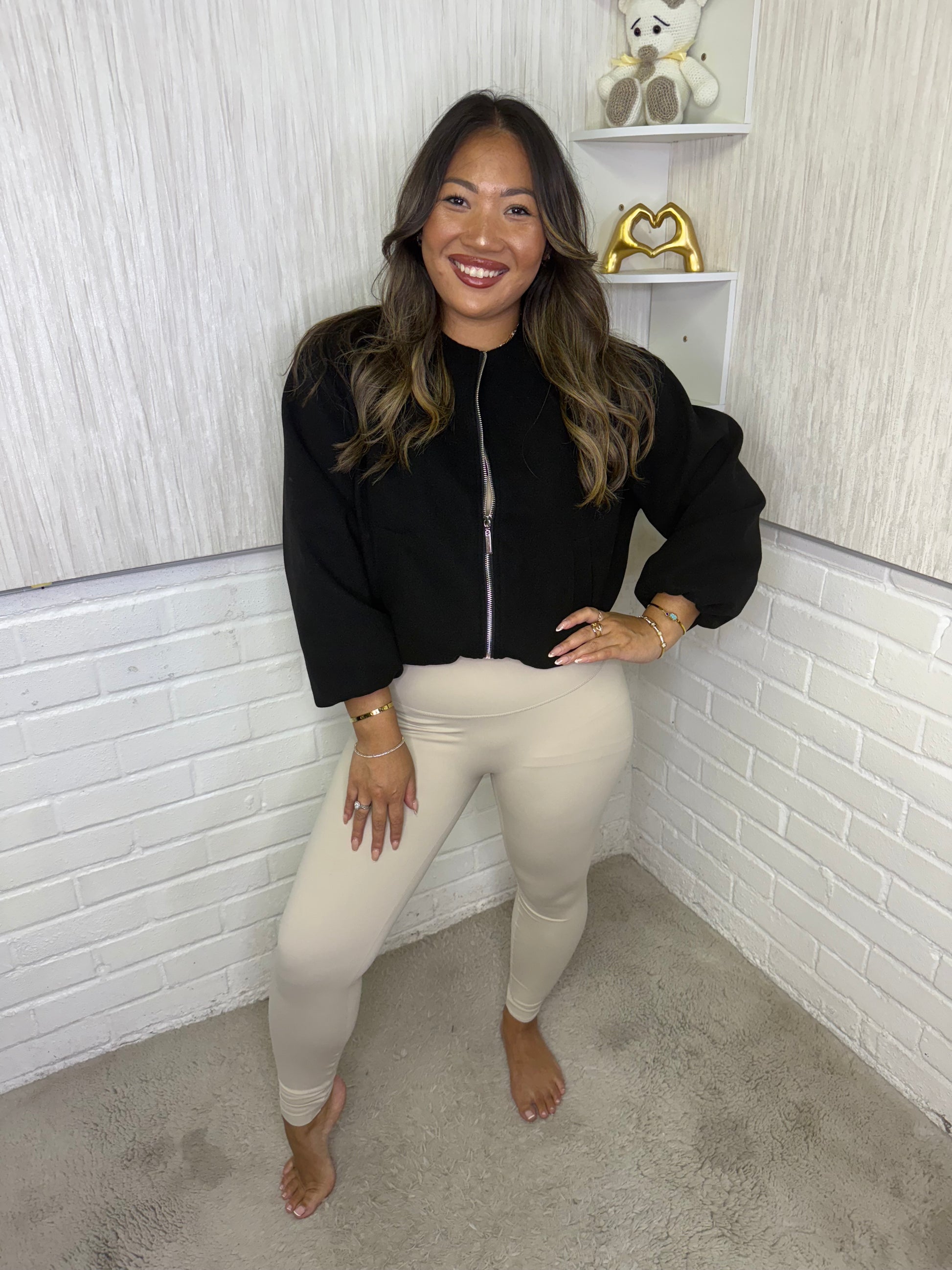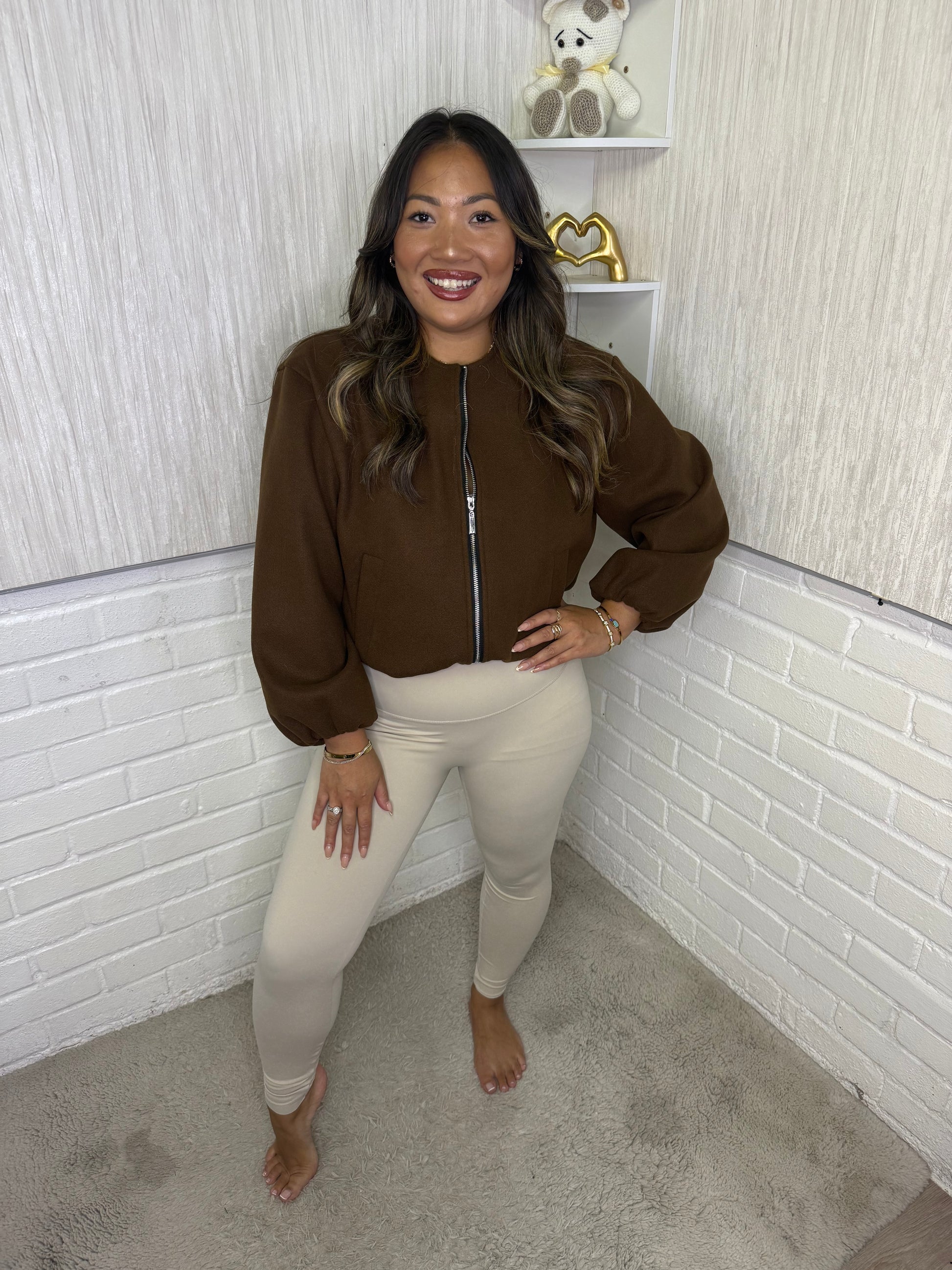 Nat is the perfect addition to your wardrobe. This balloon style zipper bomber jacket is made from 100% polyester, ensuring comfort and durability. Its one-size design fits up to a size 14. Stay stylish and trendy with Nat.