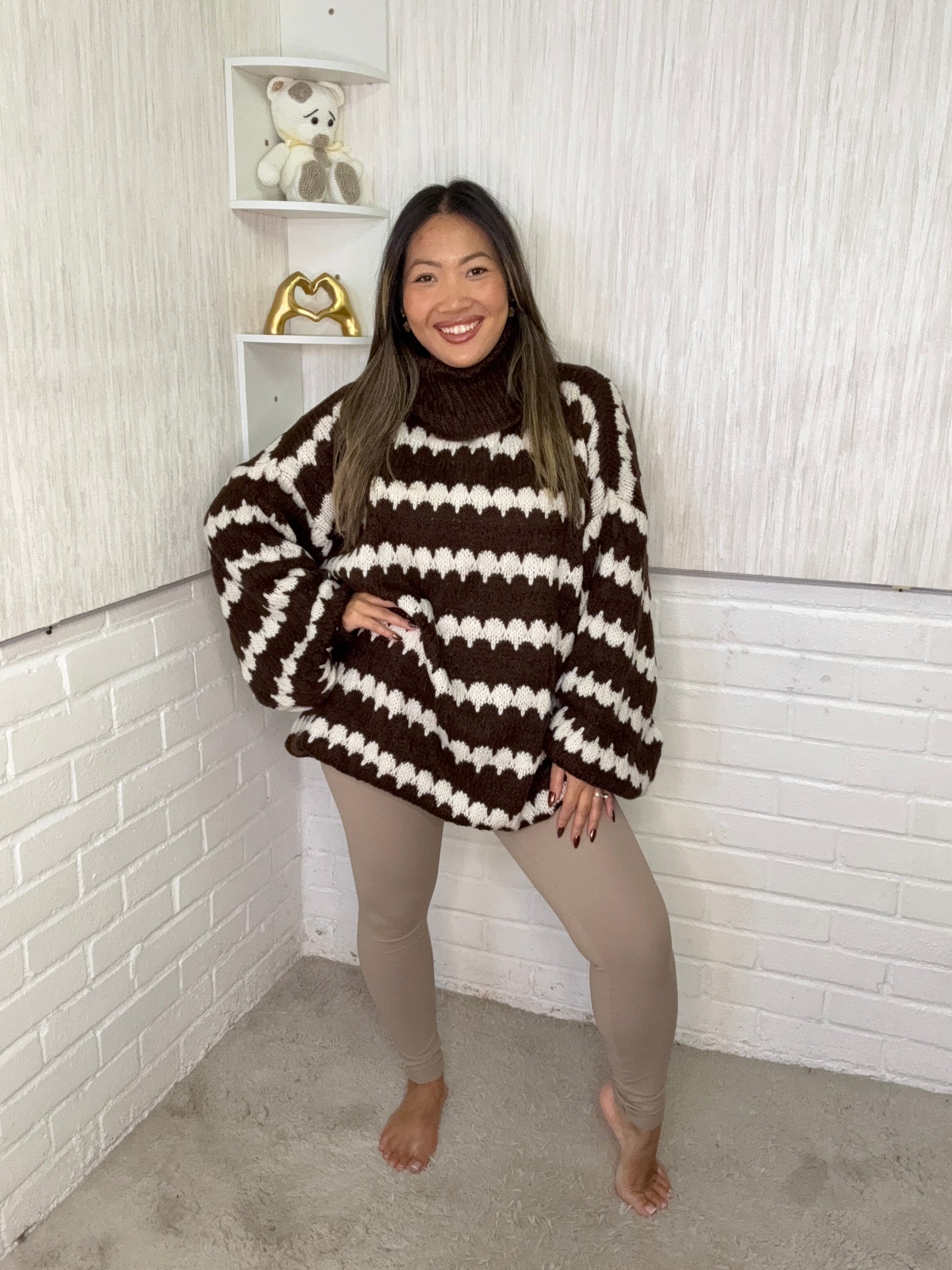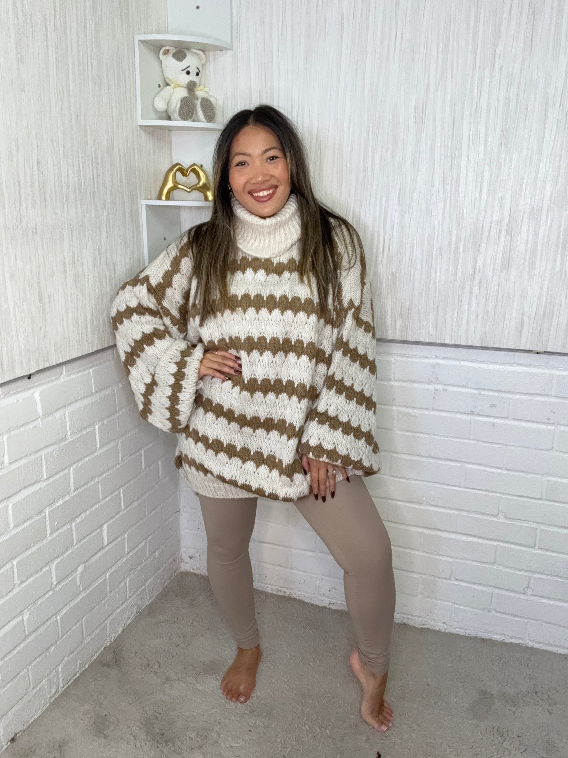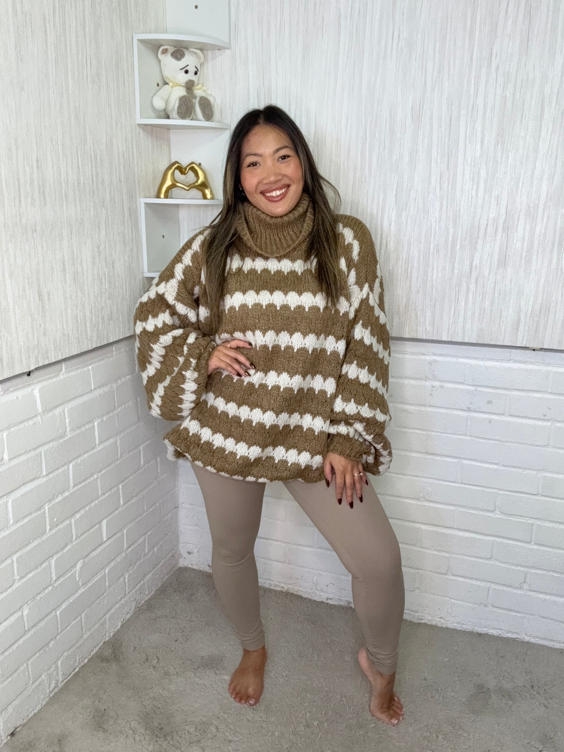 As a stunning roll neck jumper, Nina is an effortlessly stylish addition to any wardrobe. Knit with a unique zig zag pattern, it is one size fits all up to 20/22, making it both versatile and comfortable. Perfect for any fashionista looking for the perfect blend of comfort and style.