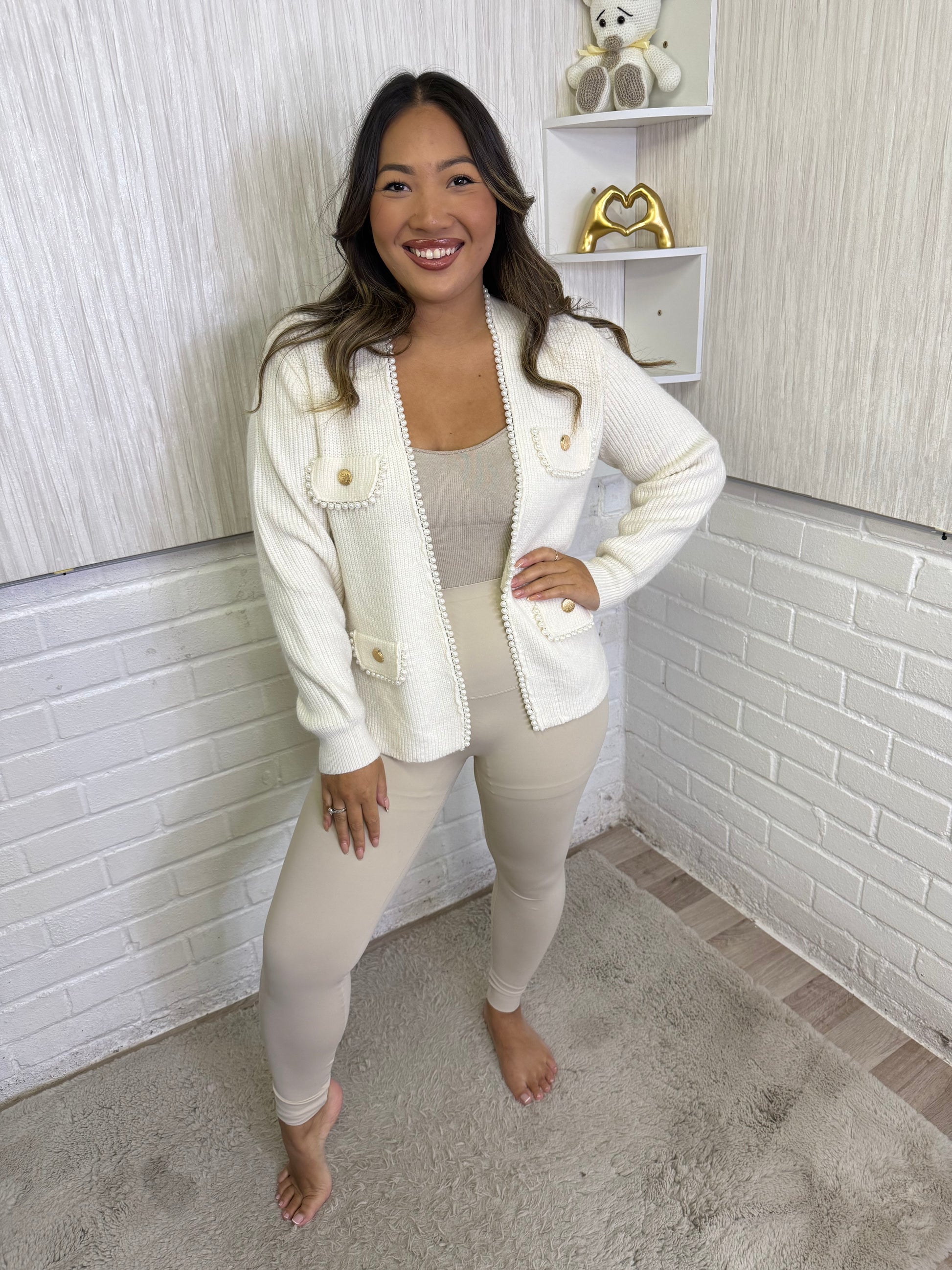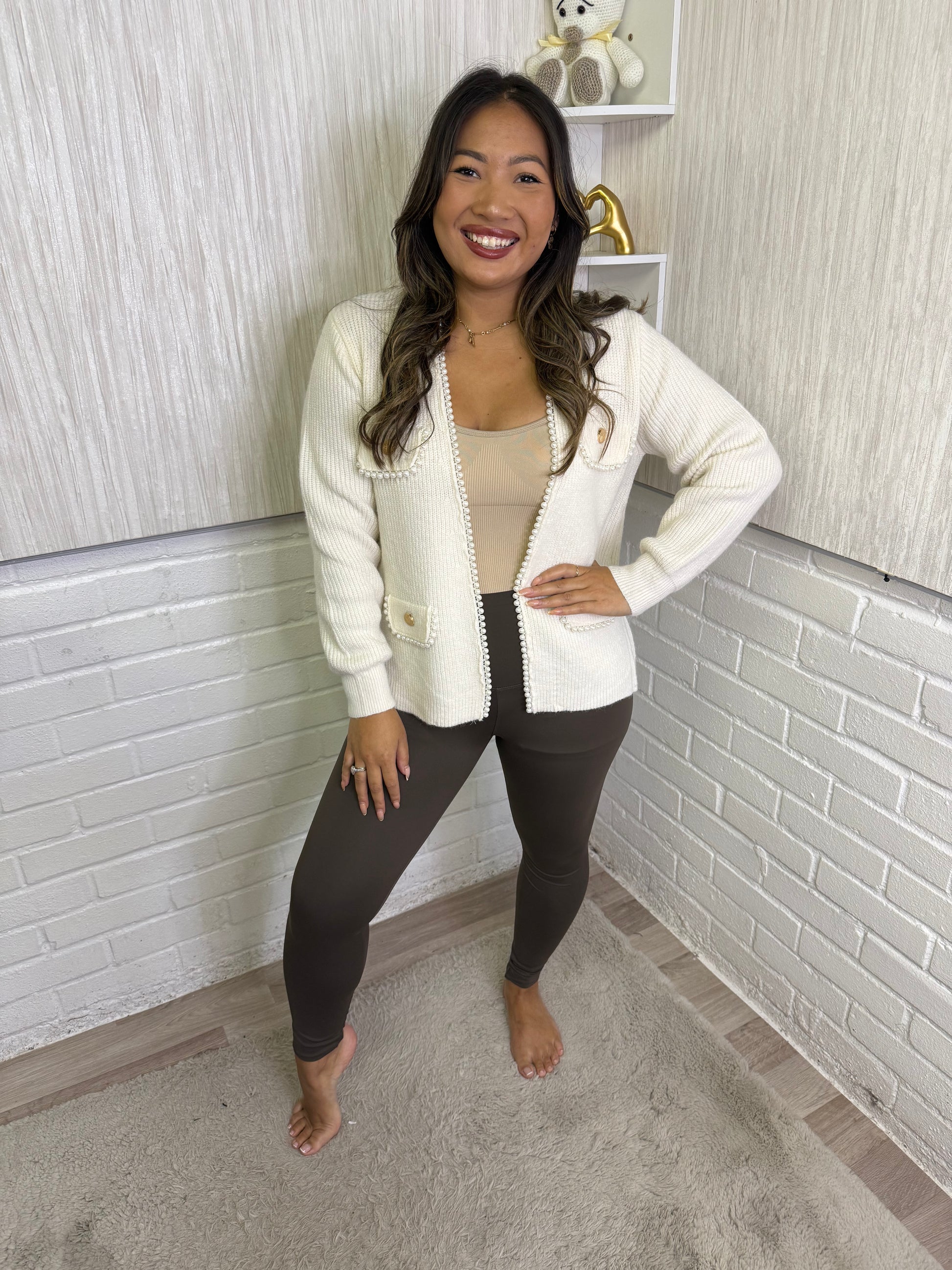 A lovely knit cardigan with pearl details - Goes up to a size 14 Material 50% viscose 28% polyamide 12% polyester