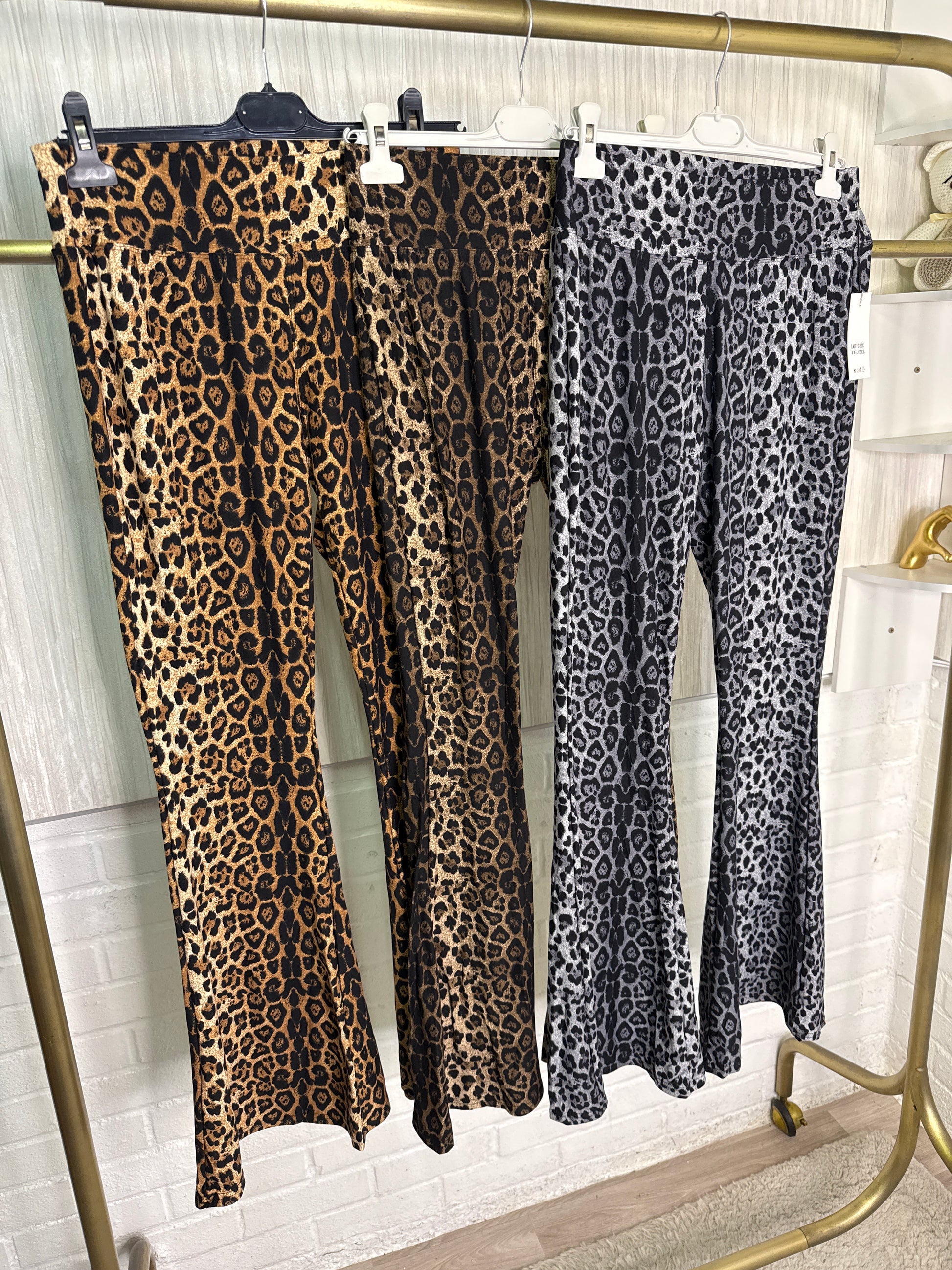 Gorgeous leopard flare trousers with a cotton feel will keep you comfy and looking stylish at the same time.