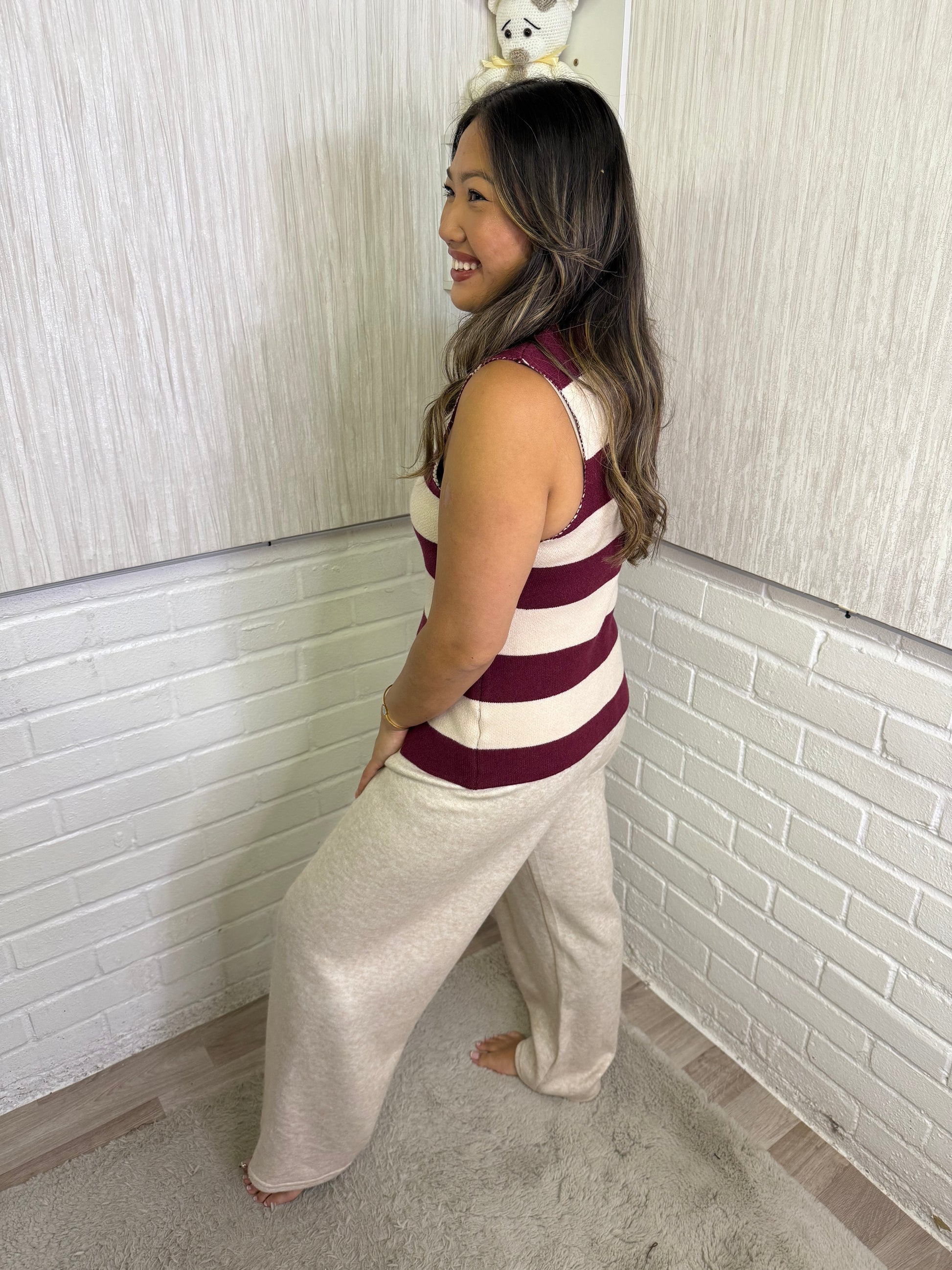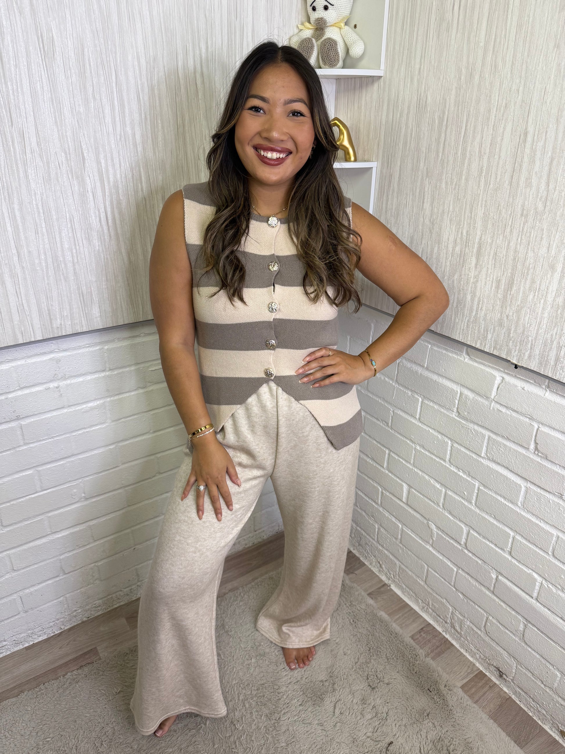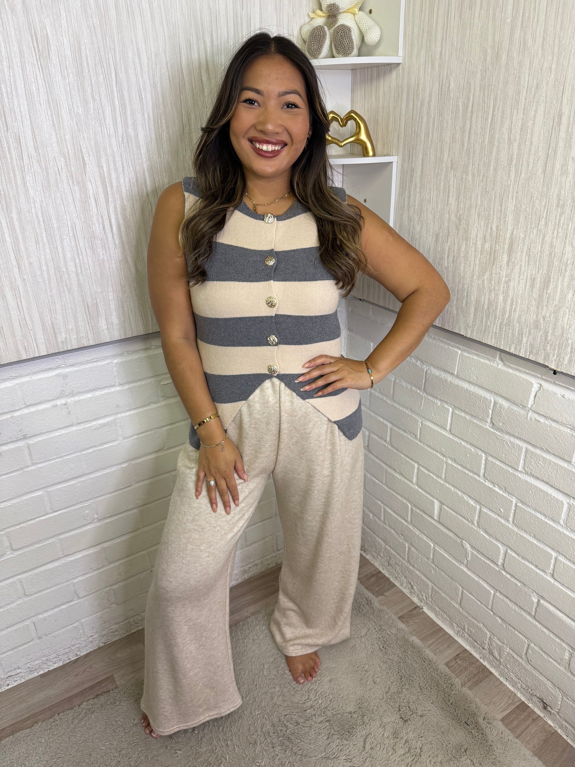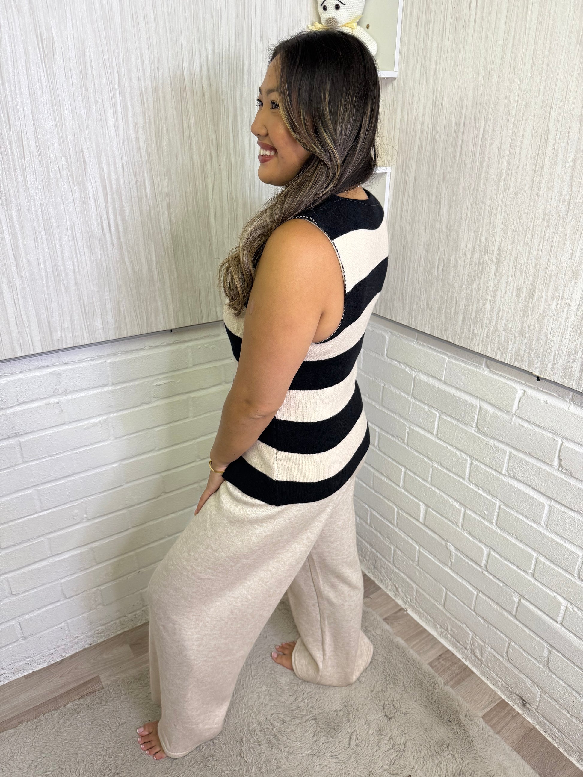 A gorgeous fine knit vest jumper with a Pinstripe detail Goes up to a size 14 - Material - 50% viscose 22% nylon 28% polyester